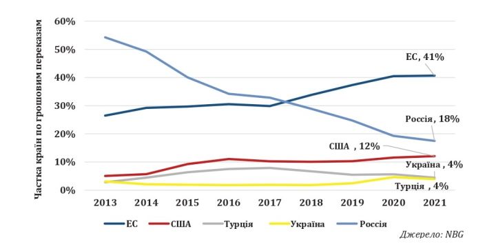 Діаграма 3. Грошові перекази в Грузію по країнах