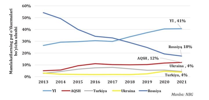 3-chizma: Grusiyaga mamlakatlar bo’yicha pul o’tkazmalari